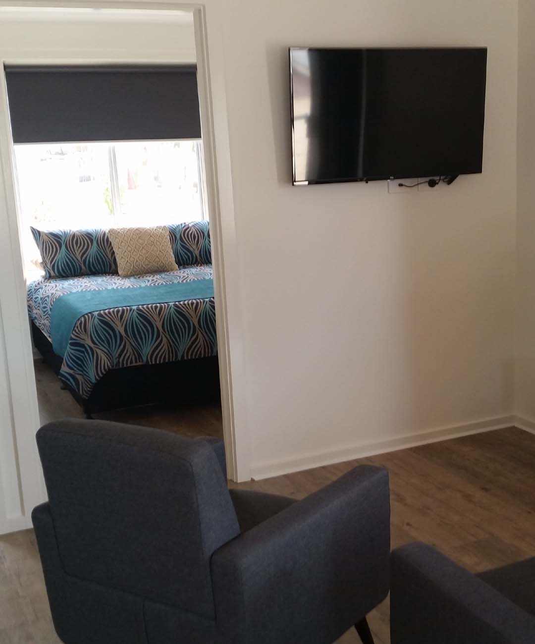 LCD TV in lounge and main bedroom, fridge, toaster, kettle, cutlery, pots and pans. All linen provided but