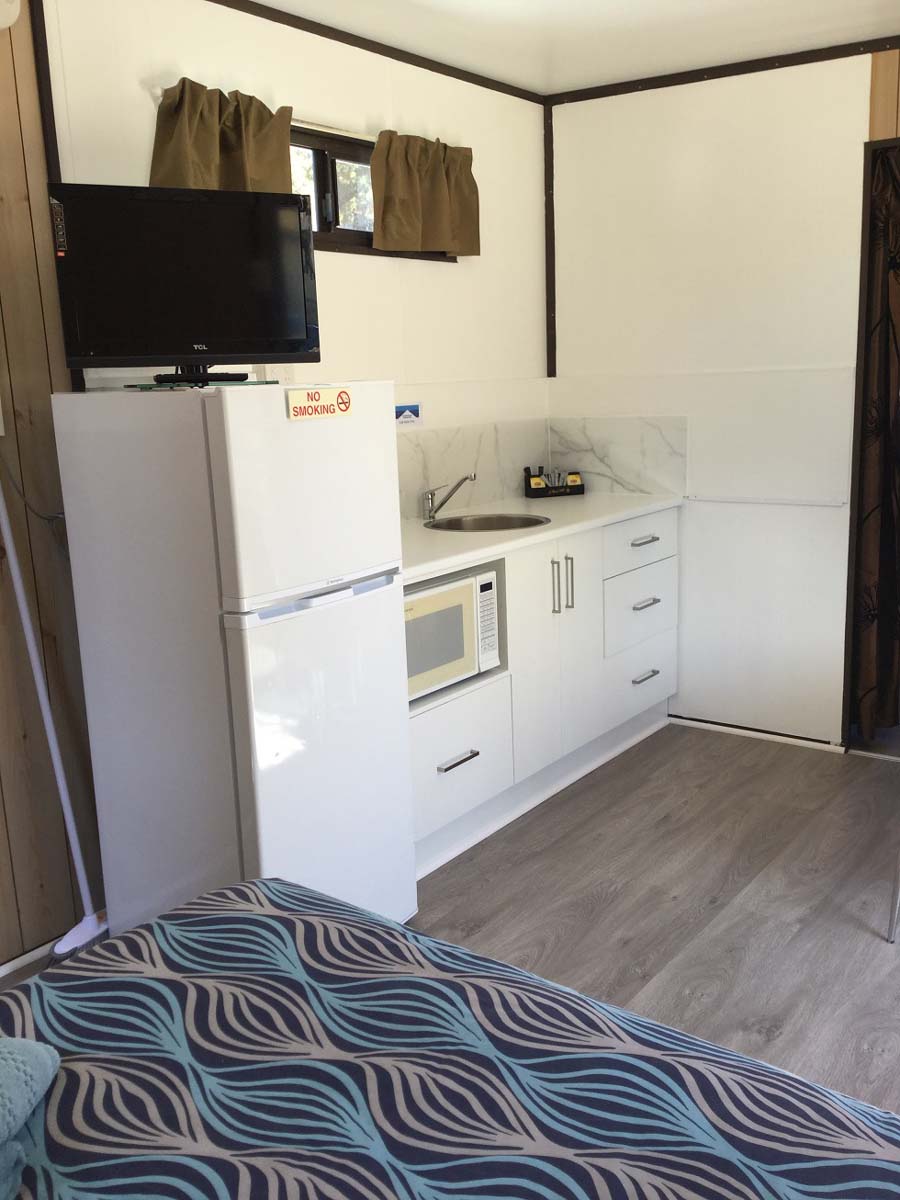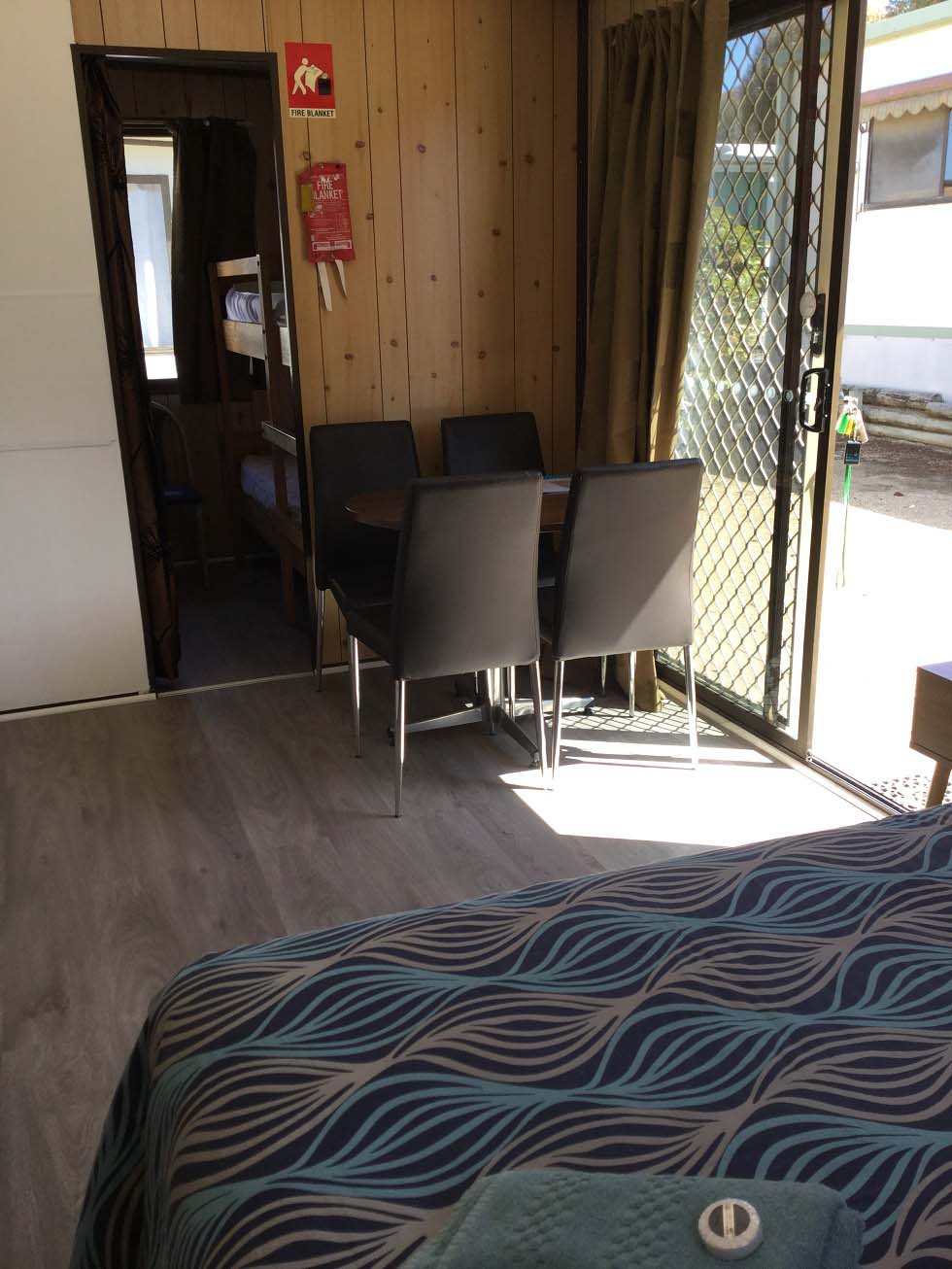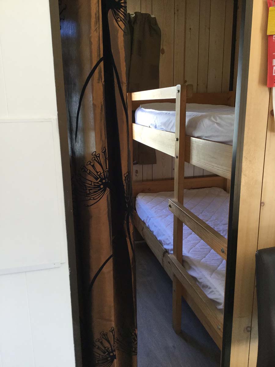 2 double bunks (4 single-sized) in separate curtained-off room – NO LINEN, MUST SUPPLY OWN.